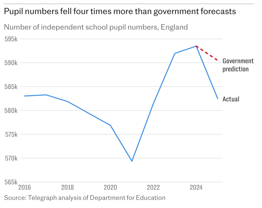 Data published by the Department for Education last week revealed an exodus of over 11,000 pupils from private schools in England alone, far outstripping the Government’s estimate of only 3,000 students transferring to the state education system from fee-paying establishments.